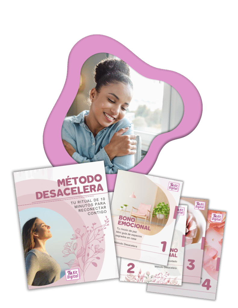 Recibirás acceso inmediato al Método Desacelera más herramientas complementarias: ejercicios prácticos, afirmaciones y guías para reconectar contigo misma desde el primer día.